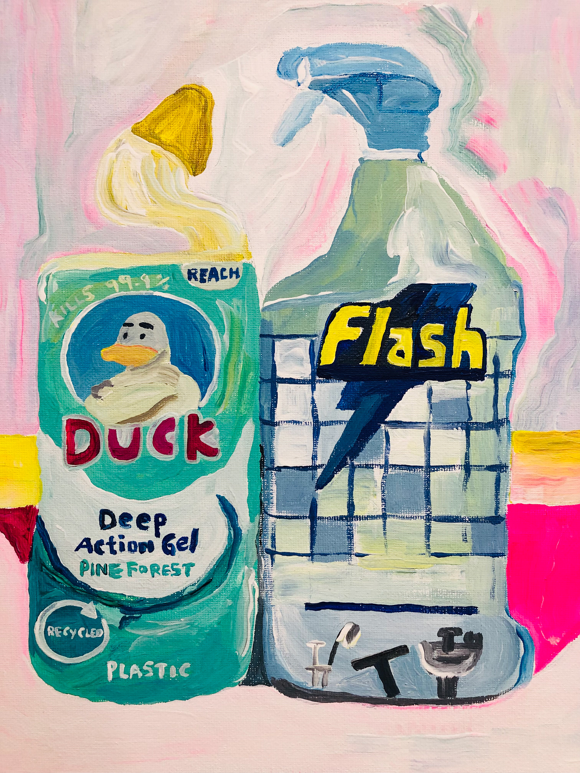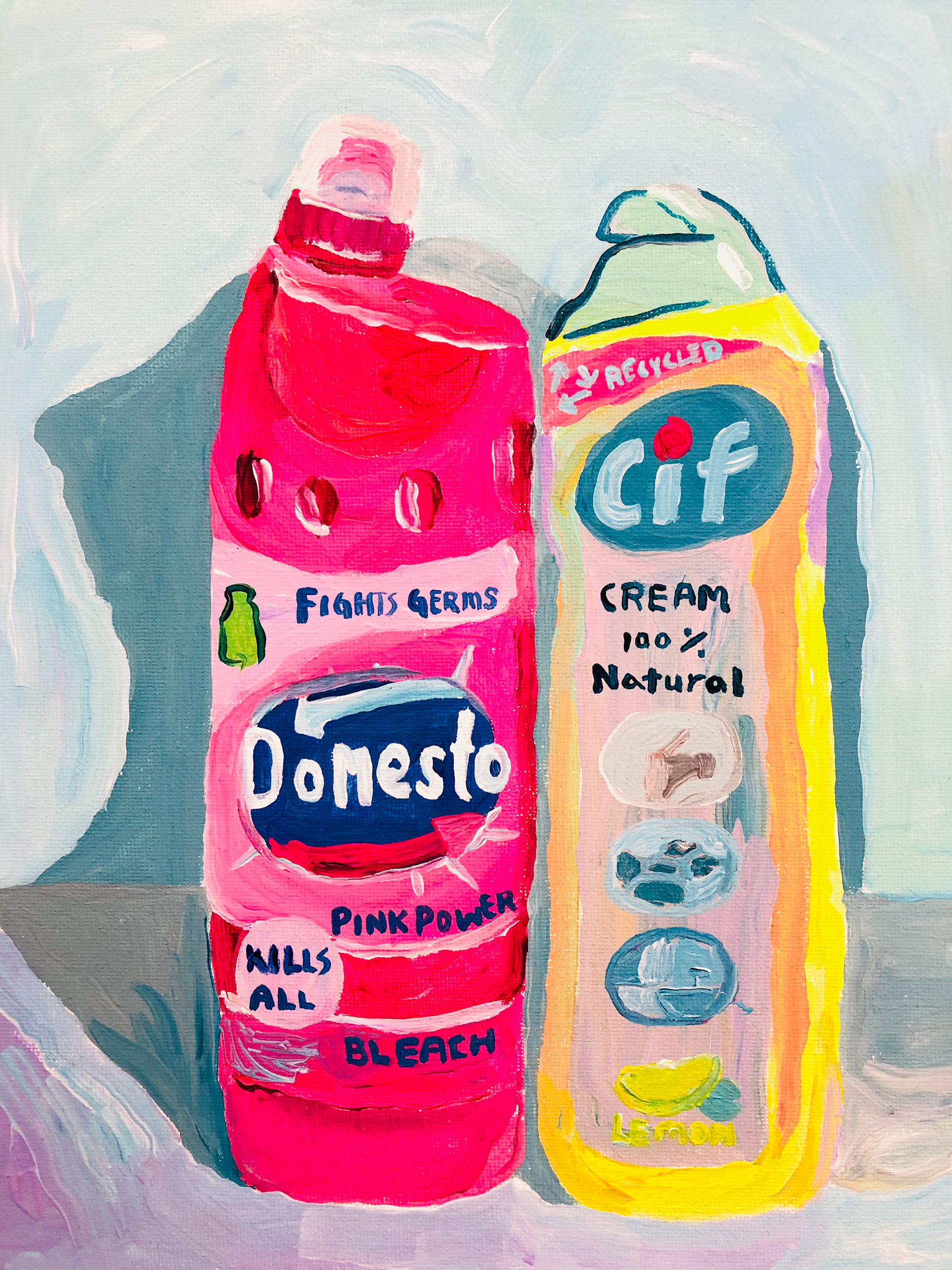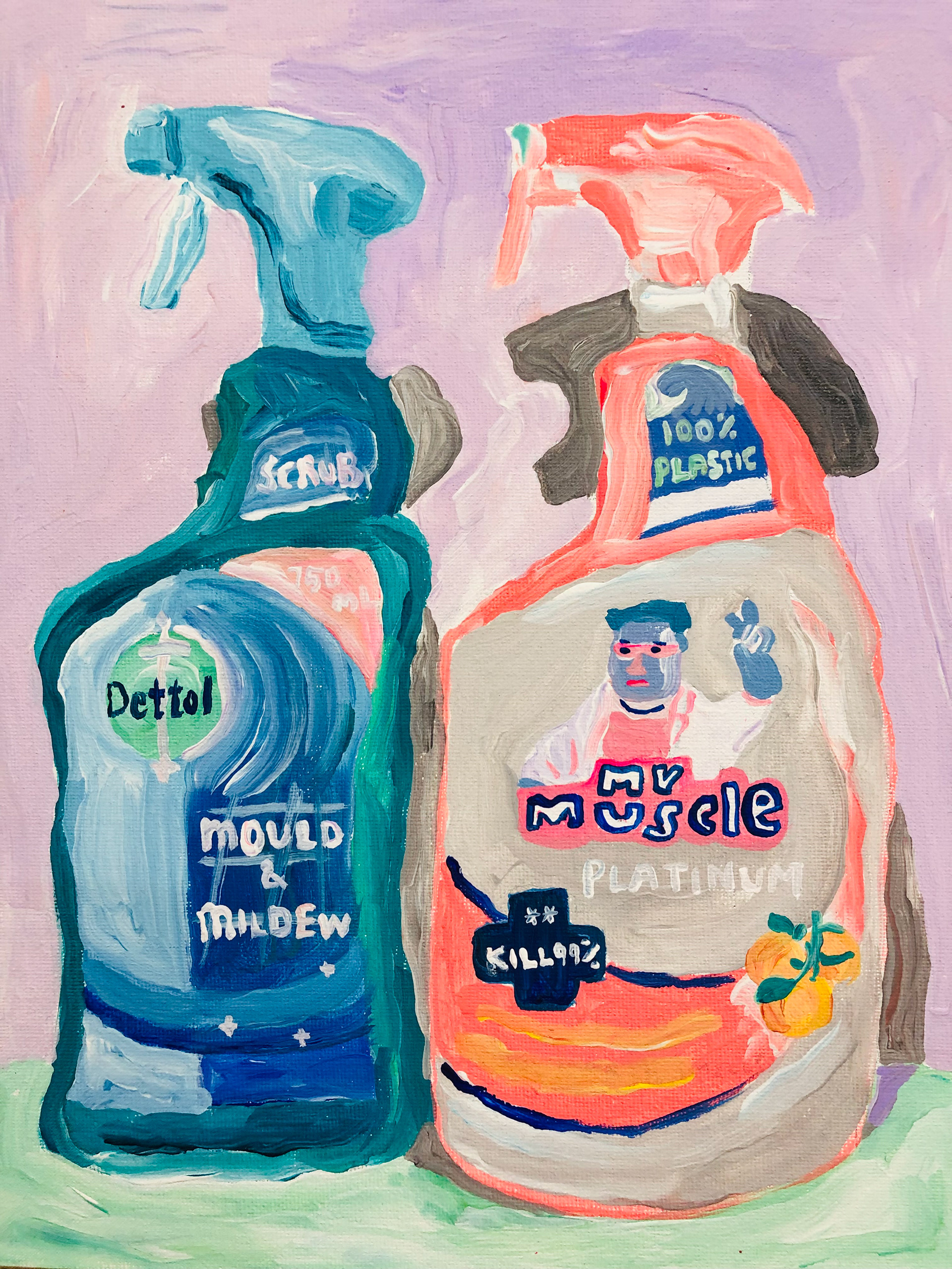 Wild Corona 2023, Acrylic on A3 Paper (Inspired by everyday encounter to litters on the street, it sparks reimagining of man-made objects in a natural environment.)
